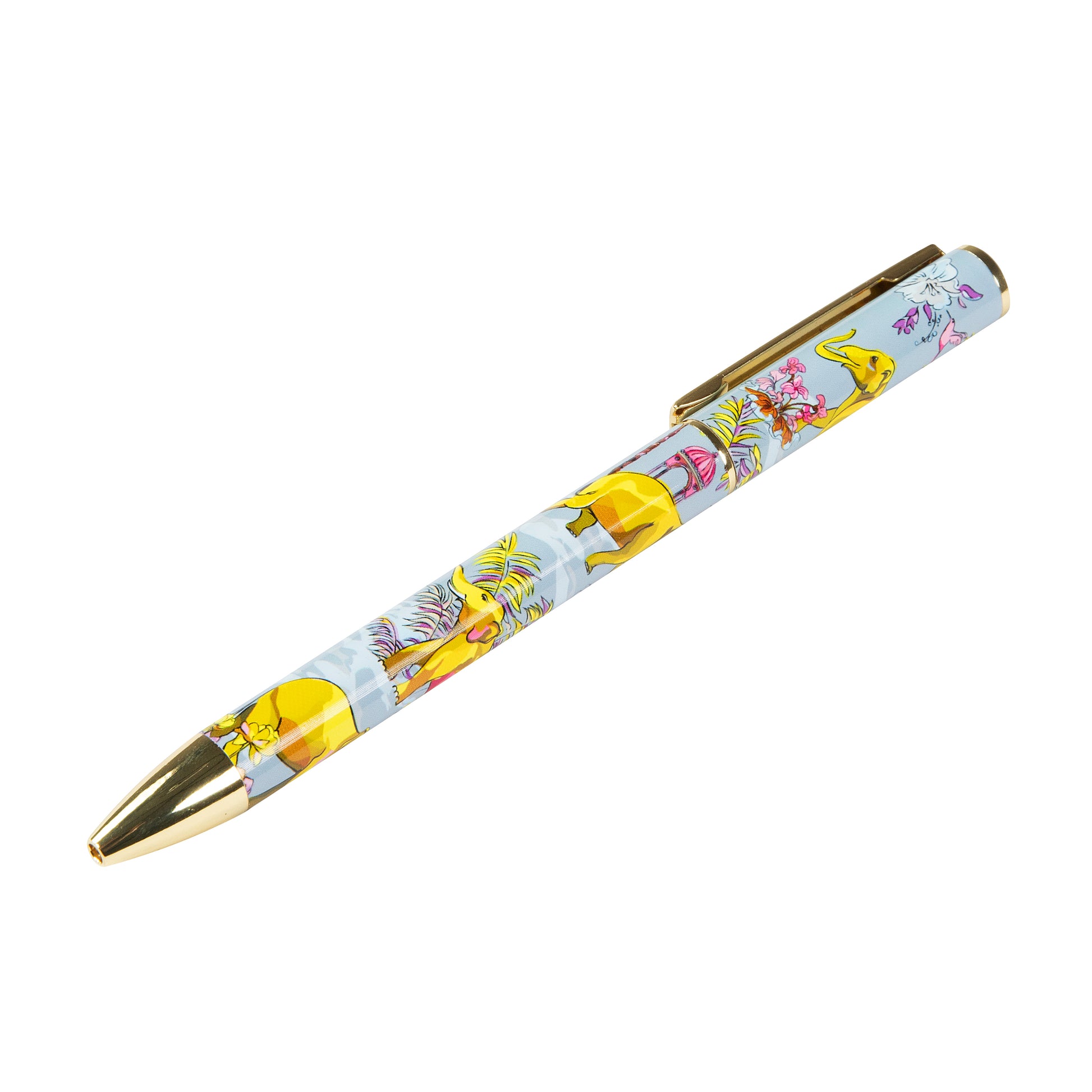 The premium metal twist pen weighs around 24g, providing a balanced and comfortable grip. It glides smoothly across the paper without scratching, while the gold-colored accents and elegant twist mechanism emphasize its premium character.