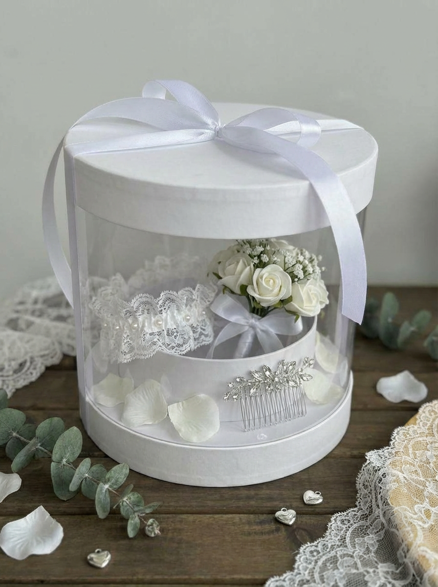 Sunrise Yuvarlak Beyaz Hediye Kutusu – Çap 19,5 × 20 cm